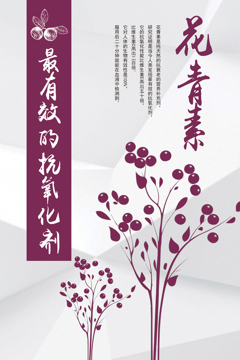 身边很多人对花青素都不是很了解,其实花青素就是纯天然的抗衰老的营养补充剂,研究证实,是当今人类所发现最有效的抗氧化剂,它的抗氧化性能比维生素E高出五十倍,比维生素C高出二十倍。它对人体的生物有效性是100%,服用后二十分钟就能在血液中检测到。
