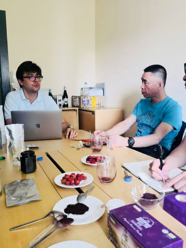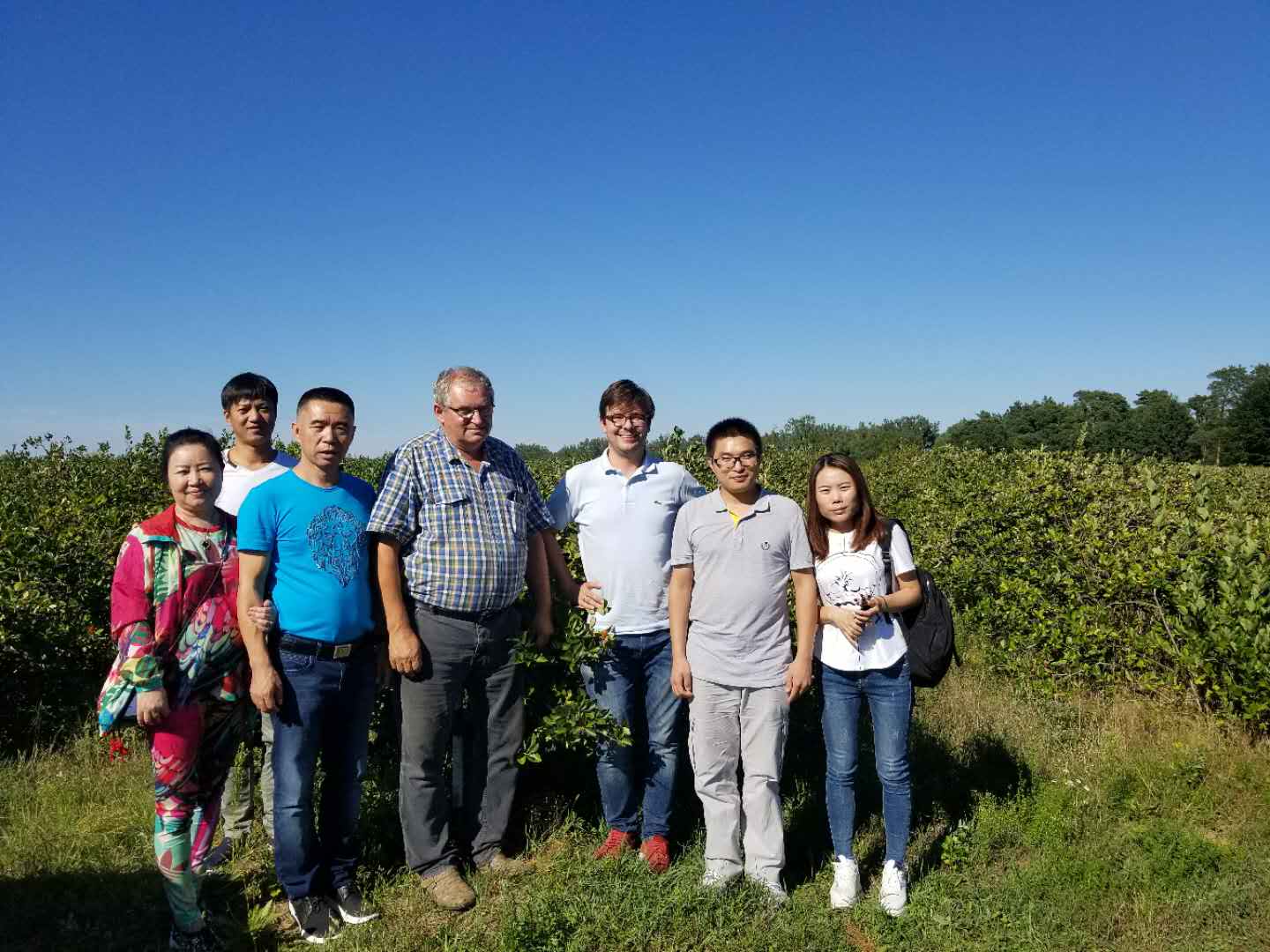 2018年8月6日,米兰官方网站_米兰中国有限公司董事长姜雯戈、董事长夫人、常务副董姜晶晶、设备经理刘纯明、江南大学周志磊老师一行来到波兰、德国调研考察不老莓种植基地,不老莓相关产品及不老莓花青素提取设备。